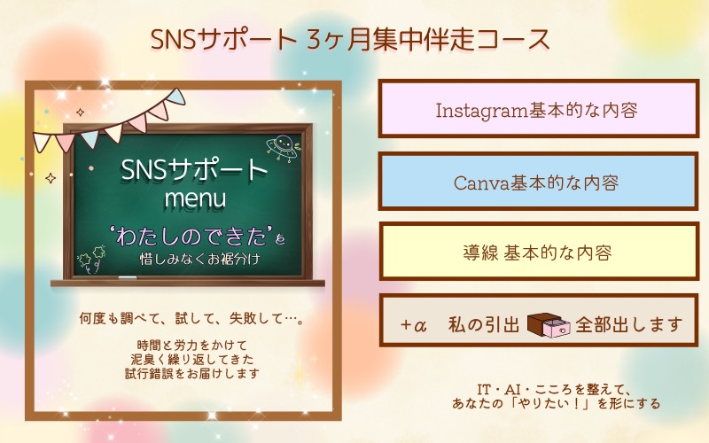 InstagramやCanva、AI活用などに優しく伴走。